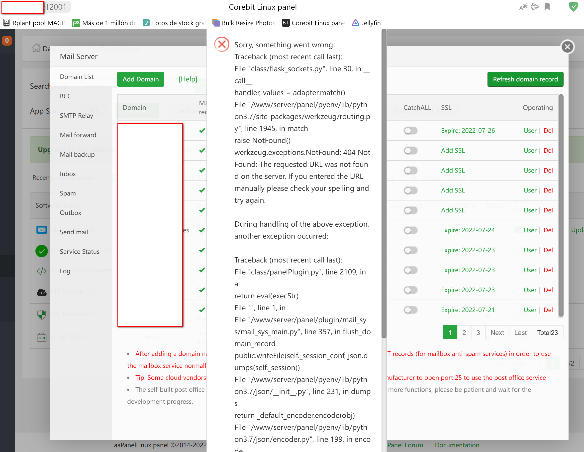 File "/www/server/panel/plugin/mail_sys/mail_sys_main.py", line 357, in flush_domain_record