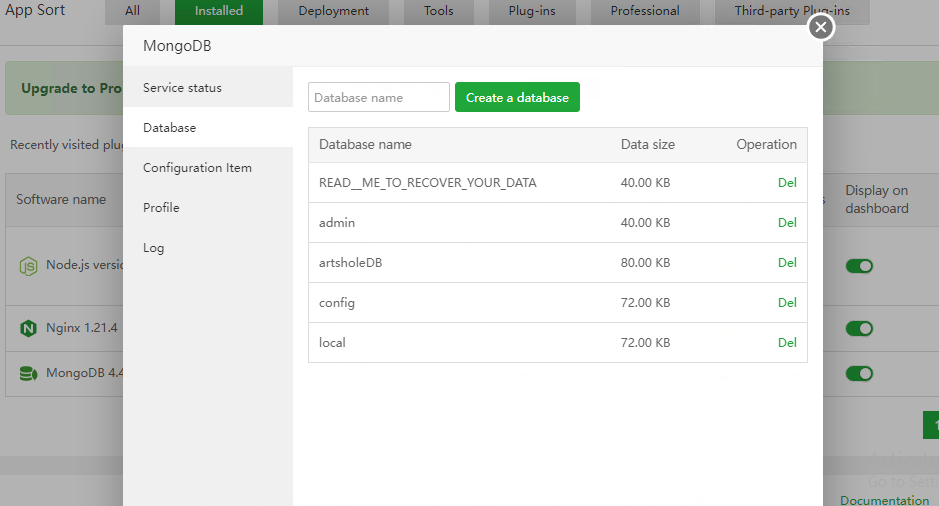 The database seems to be deleted at this time.