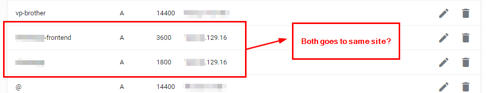 but when I visit "example.com" and "example-frontend.com", both seems to point to "example.com" instead,