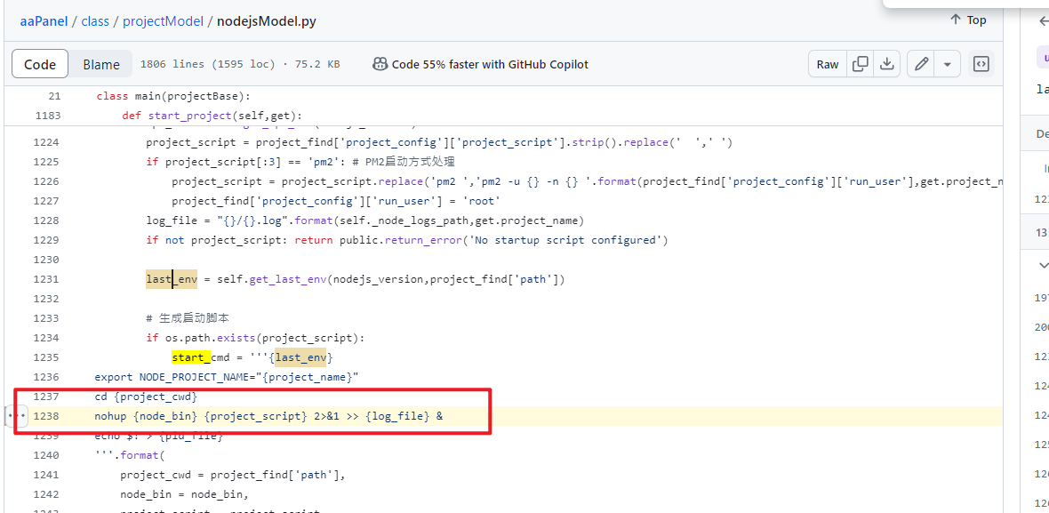 https://github.com/aaPanel/aaPanel/blob/master/class/projectModel/nodejsModel.py#L1238
