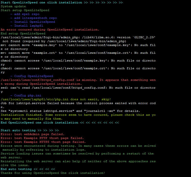 openlitespeed installation ERROR THROUGH SSH COMMAND LINE
