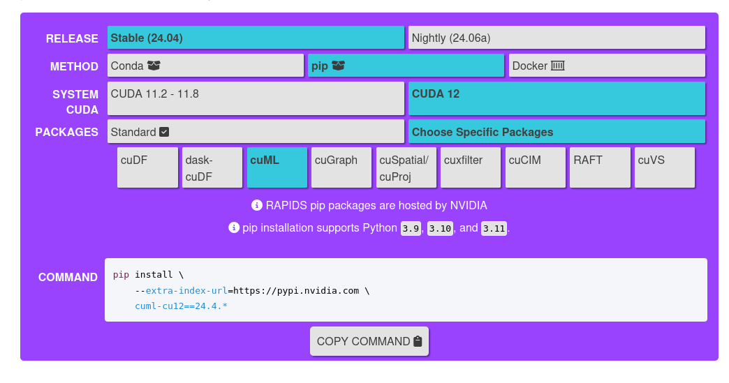 cuML pypi: https://pypi.org/project/cuml-cu12/