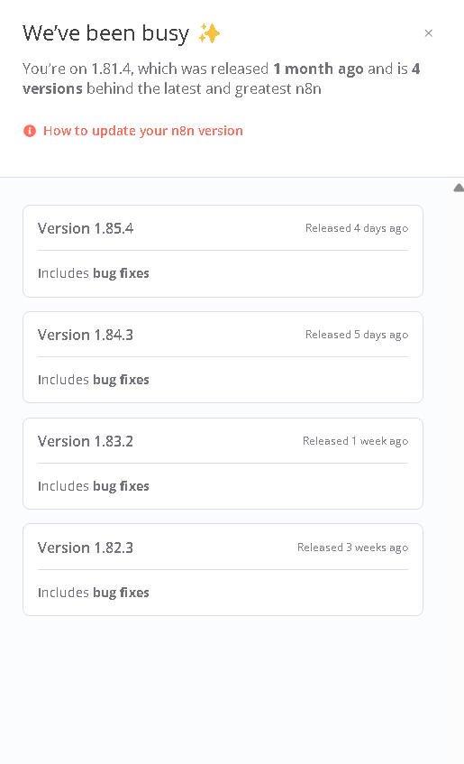 I can't find a way to update the projects. Remembering that I intend to update versions for all apps and not just n8n.
