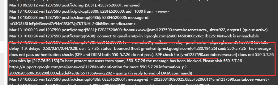 Troubleshoot log /var/log/rspamd/rspamd.log