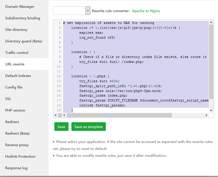 try_files $uri $uri/ /index.php;