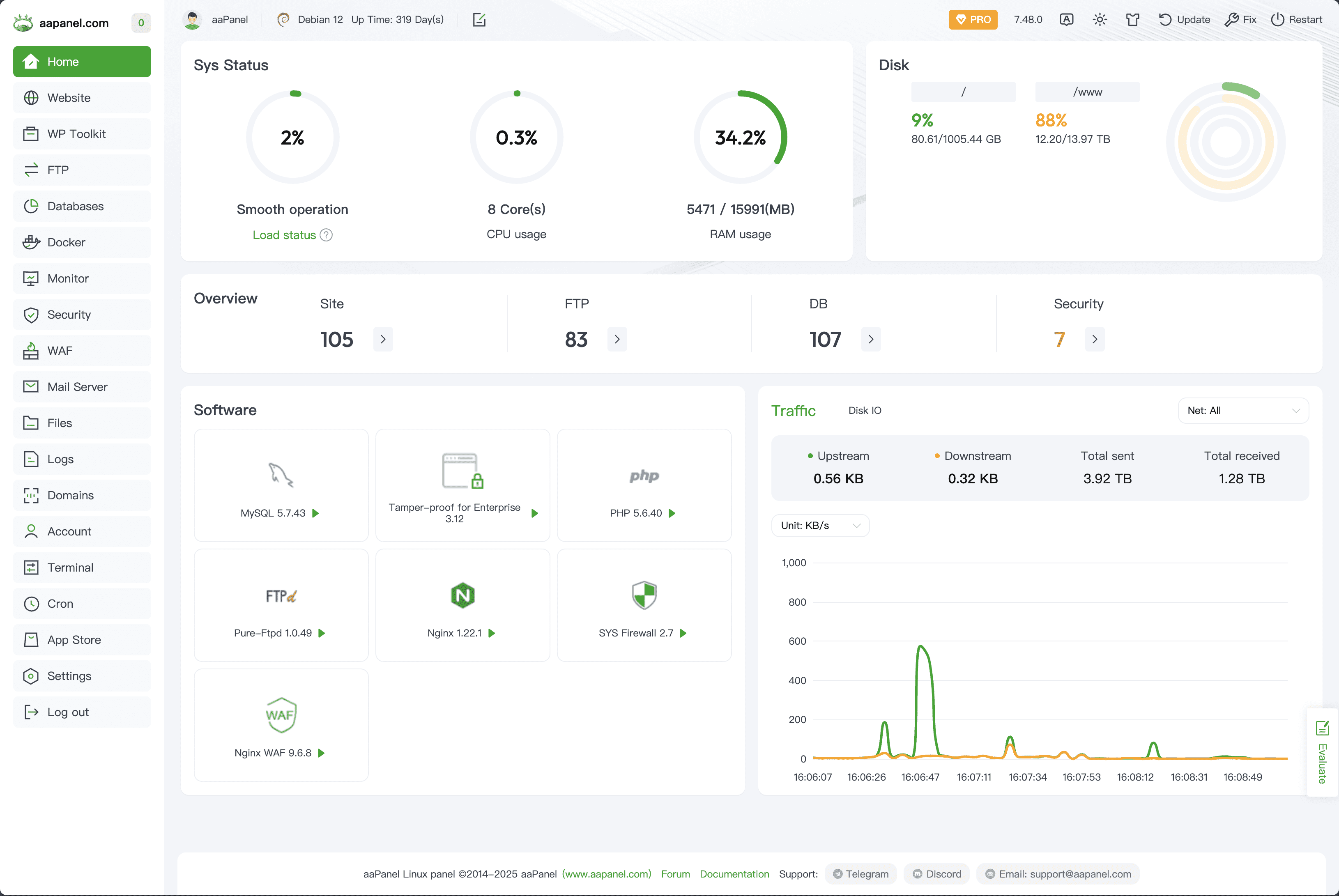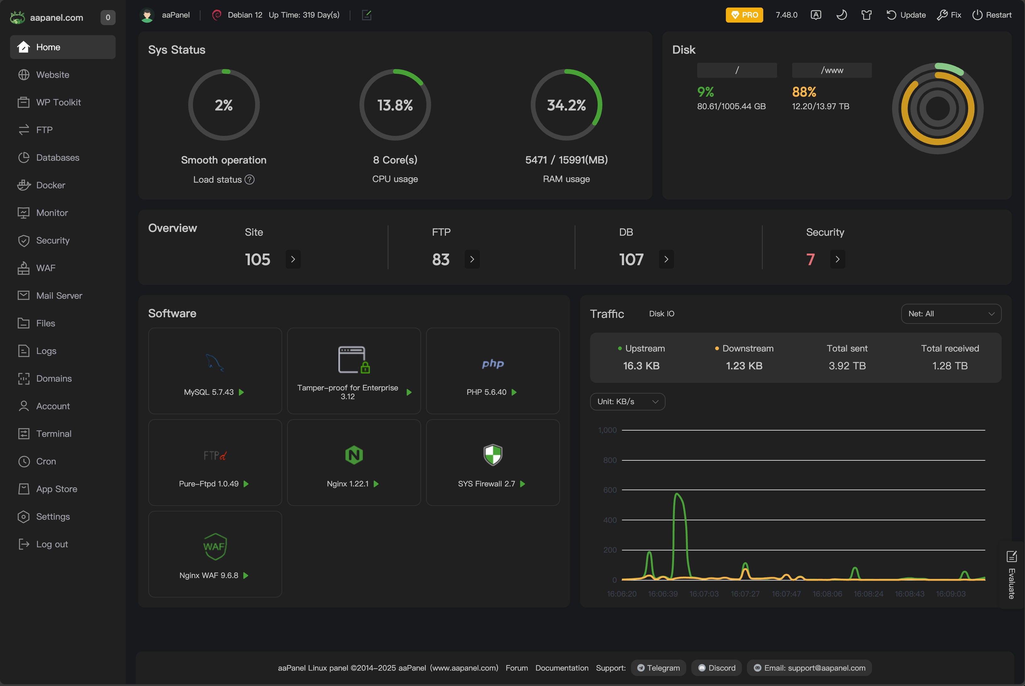 aaPanel is a Free and Open source Hosting control panel, encapsulates common Linux commands into functional modules, It can be completed in a few clicks on the panel