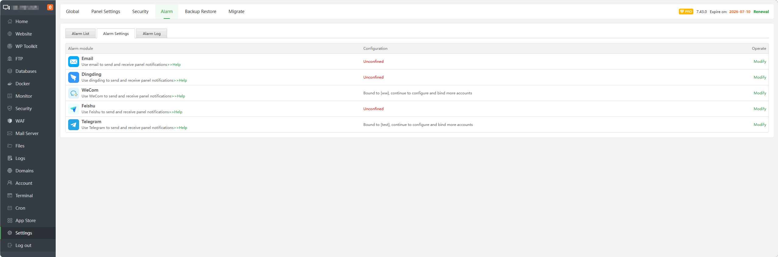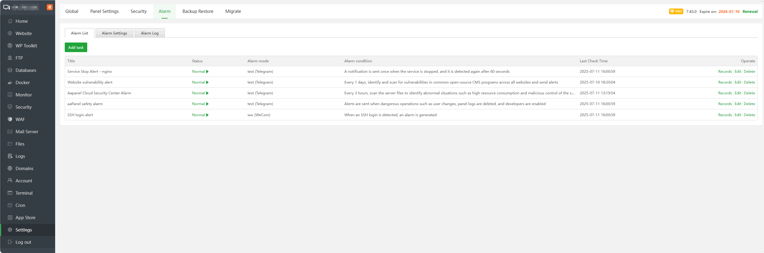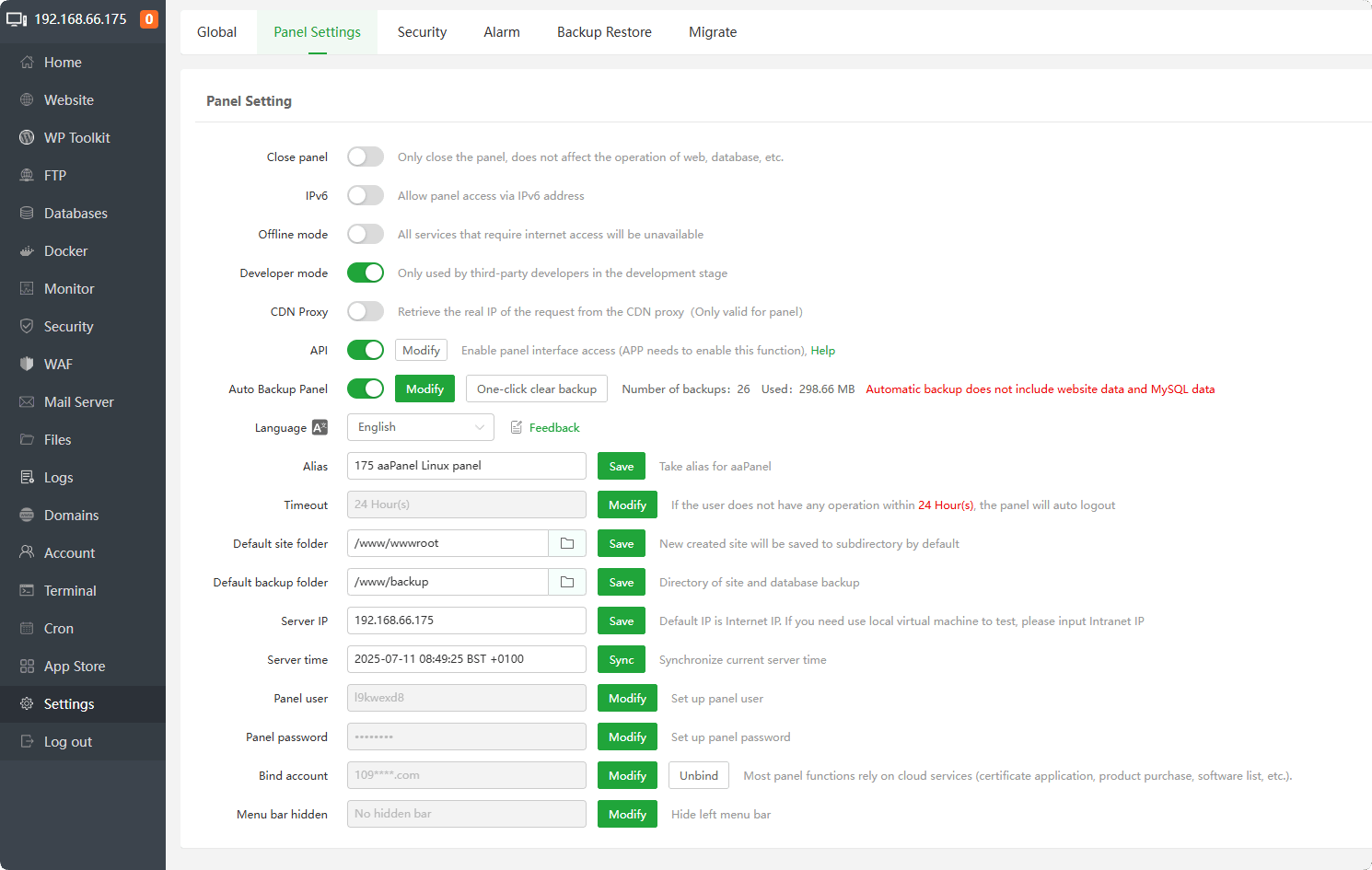 development stageAPI : Enable panel interface access (aaPanel Mobile needs to enable this function)