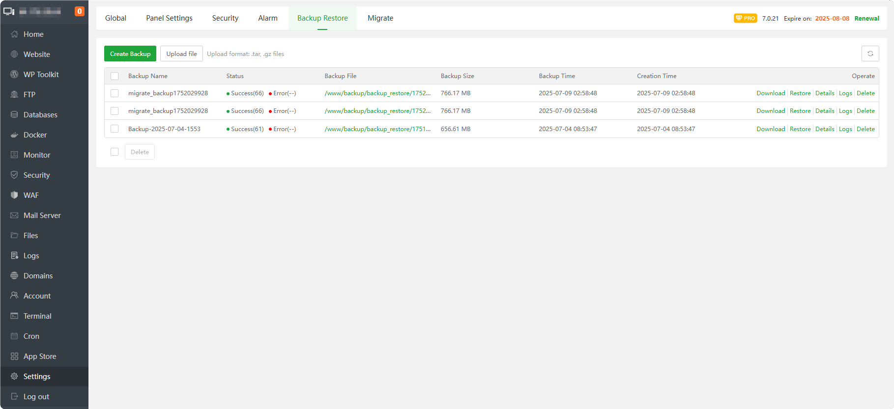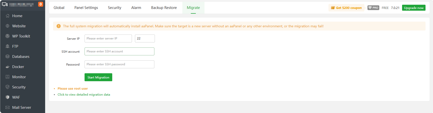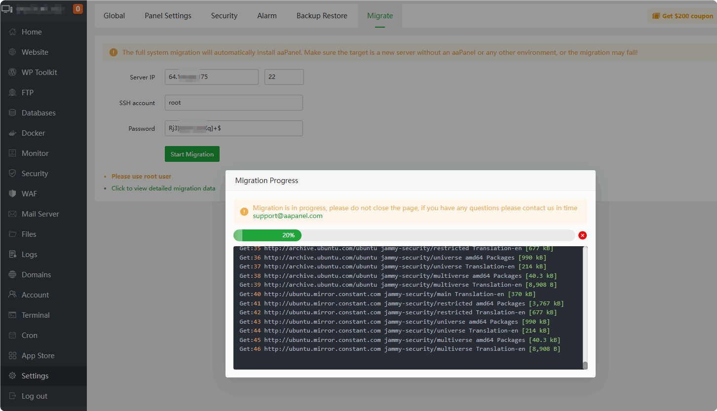 During the migration process, the corresponding data will be backed up, aaPanel will be automatically installed and then restored to the target server