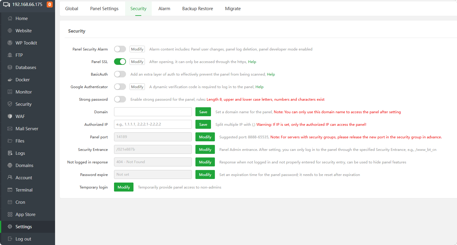 Only close the panel, does not affect the operation of web, database, etc.IPv6 : Allow panel access via IPv6 address. If