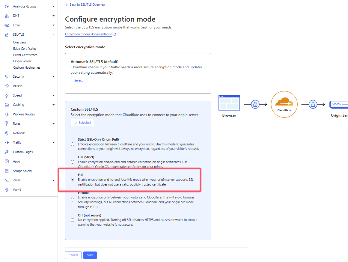 Solution2: Set CloudFlare's encryption mode to FULL