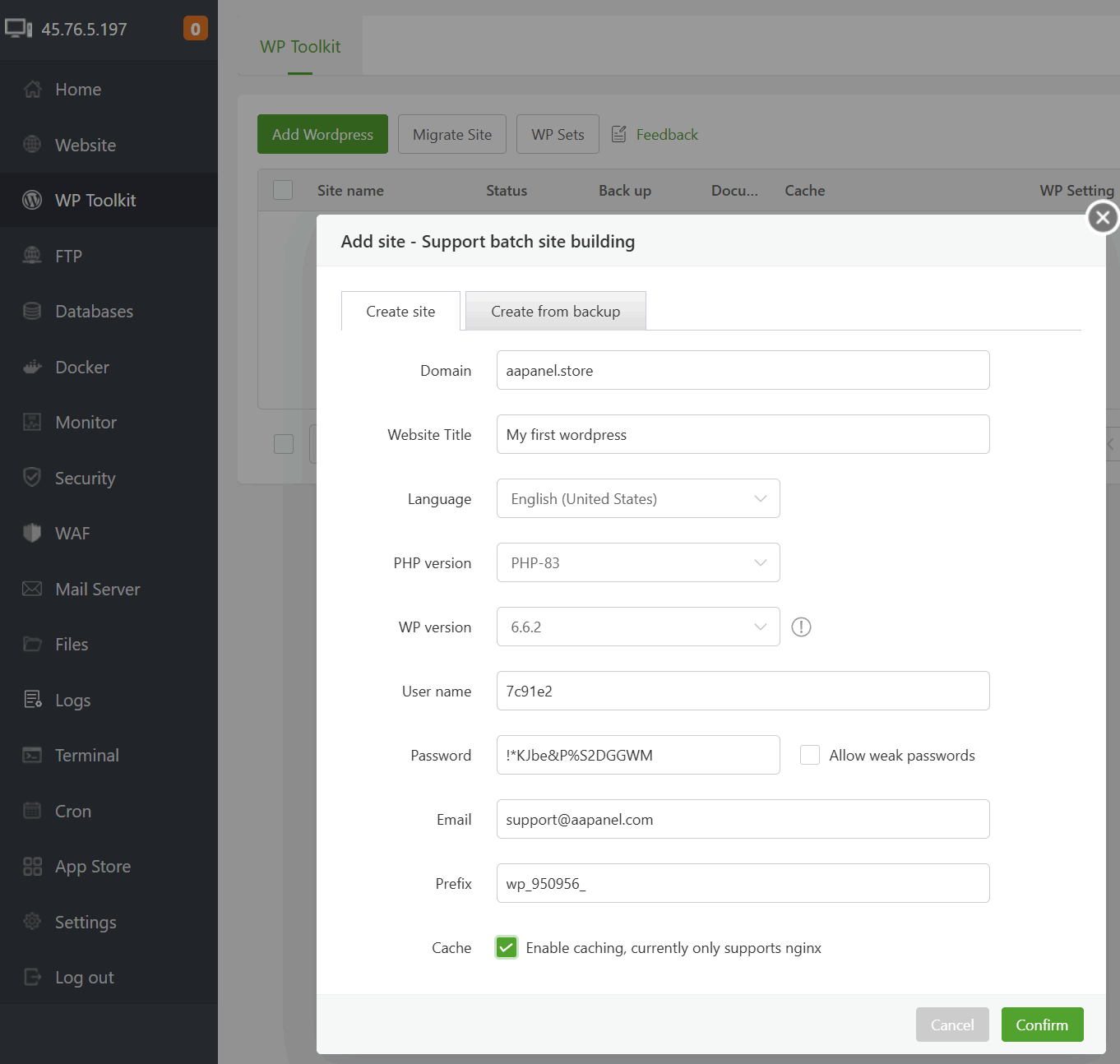 Congratulations, you have successfully set up your WordPress! Continue exploring the aaPanel features, and feel free to reach out to our support team for any assistance. email: [email protected]