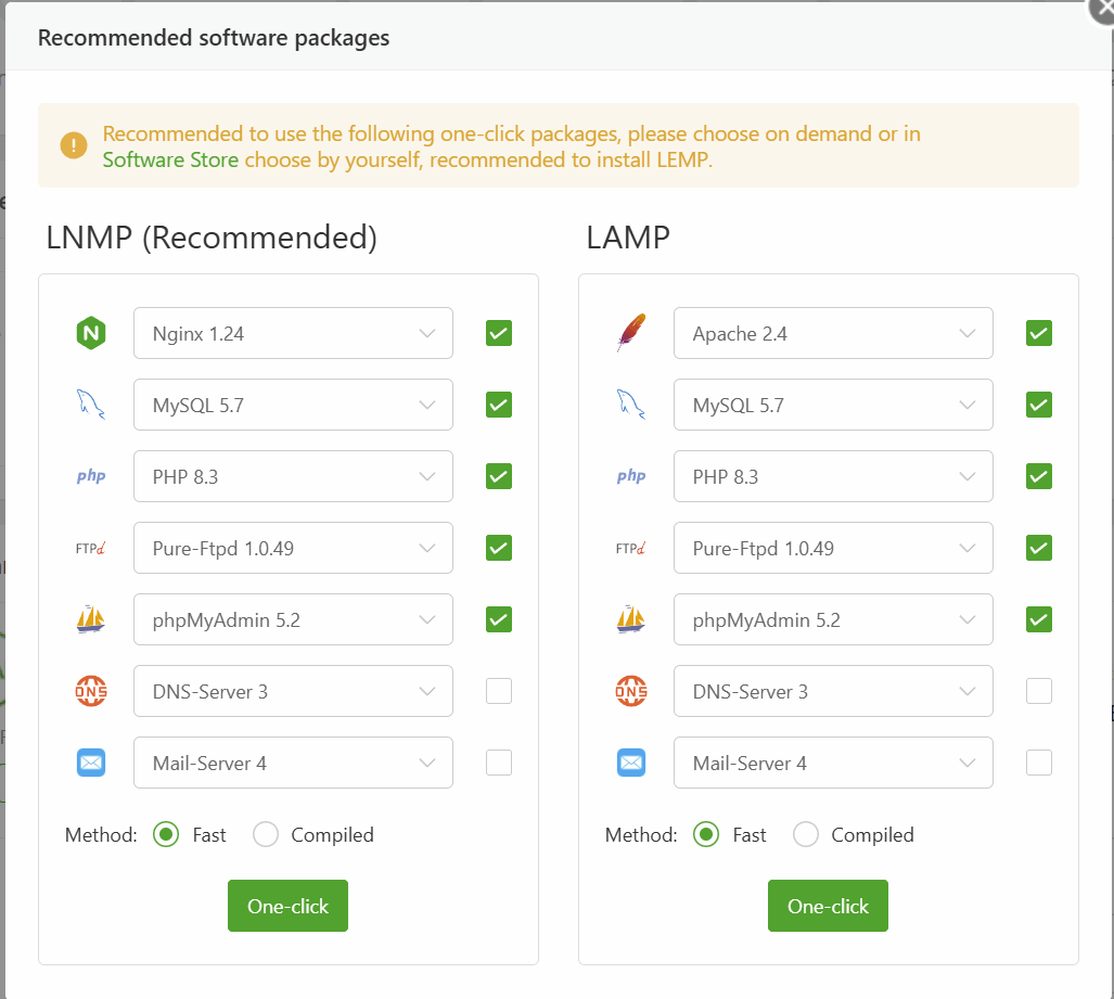 We recommend that you use the LNMP environment. If your server is mainly used to run WordPress, we recommend that you use Mysql as your database.
