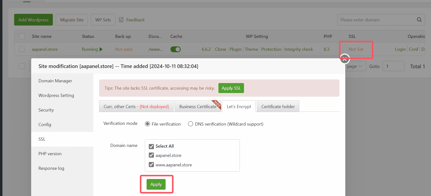 Don't forget to apply for a free SSL certificate for your WordPress