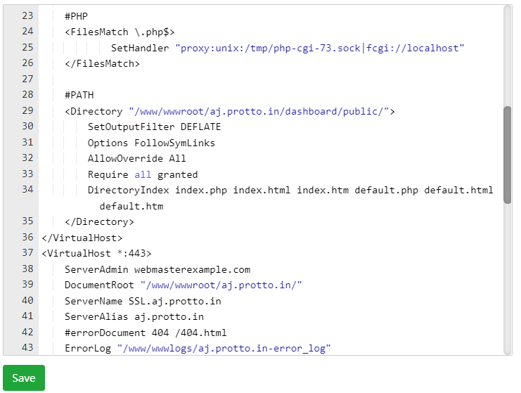 If the .htaccess file that ships with Laravel does not work with your Apache installation, try this one: