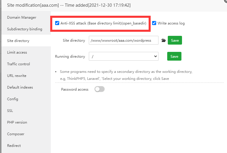 aaPanel_Jose Hello aaP_raj_bsr1996 Please try to turn off the cross-site function to see if this function is causing the problem