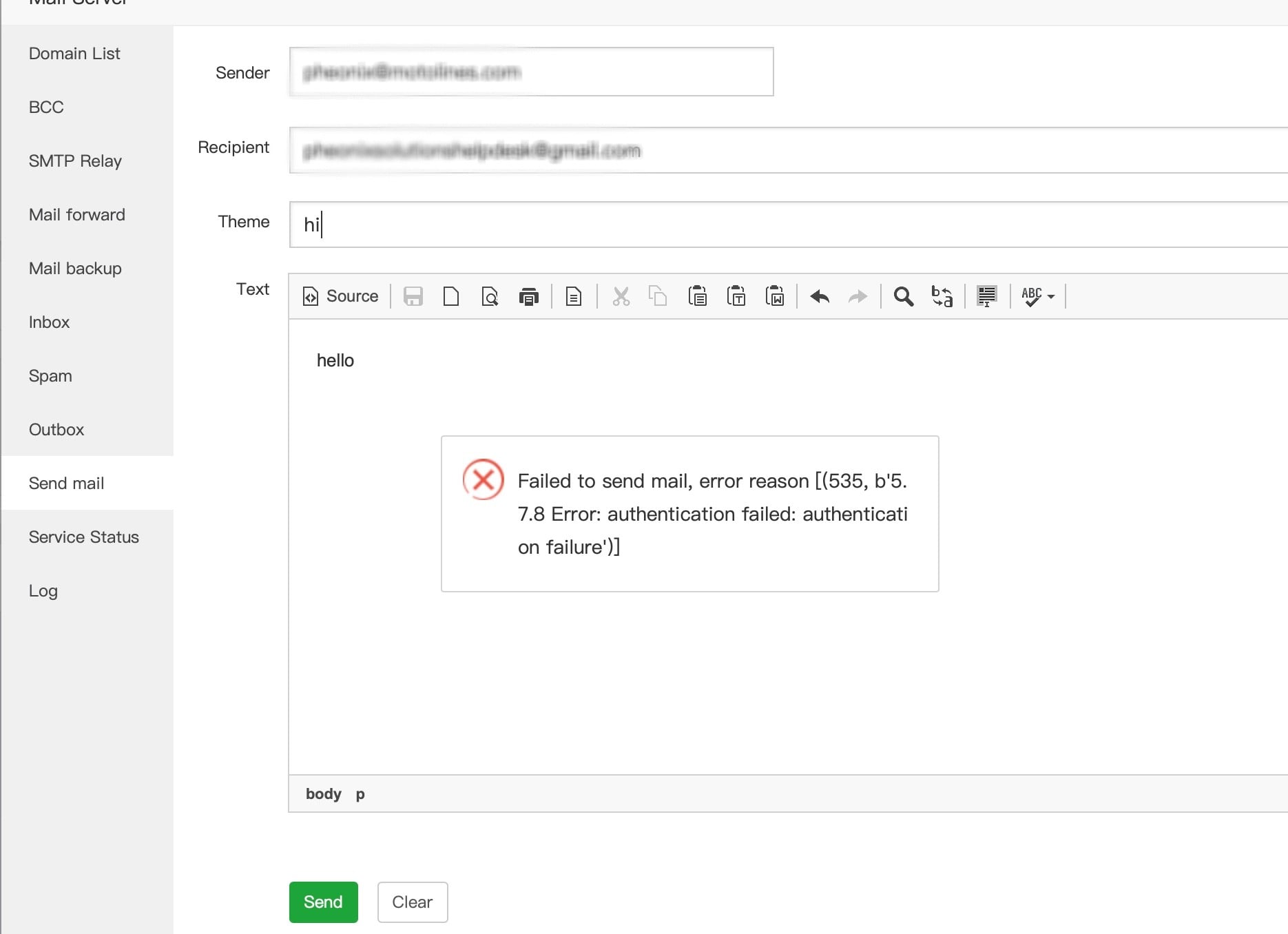 I am able to open the webmail but unable to login. I am able to send mail from terminal but not through the console.