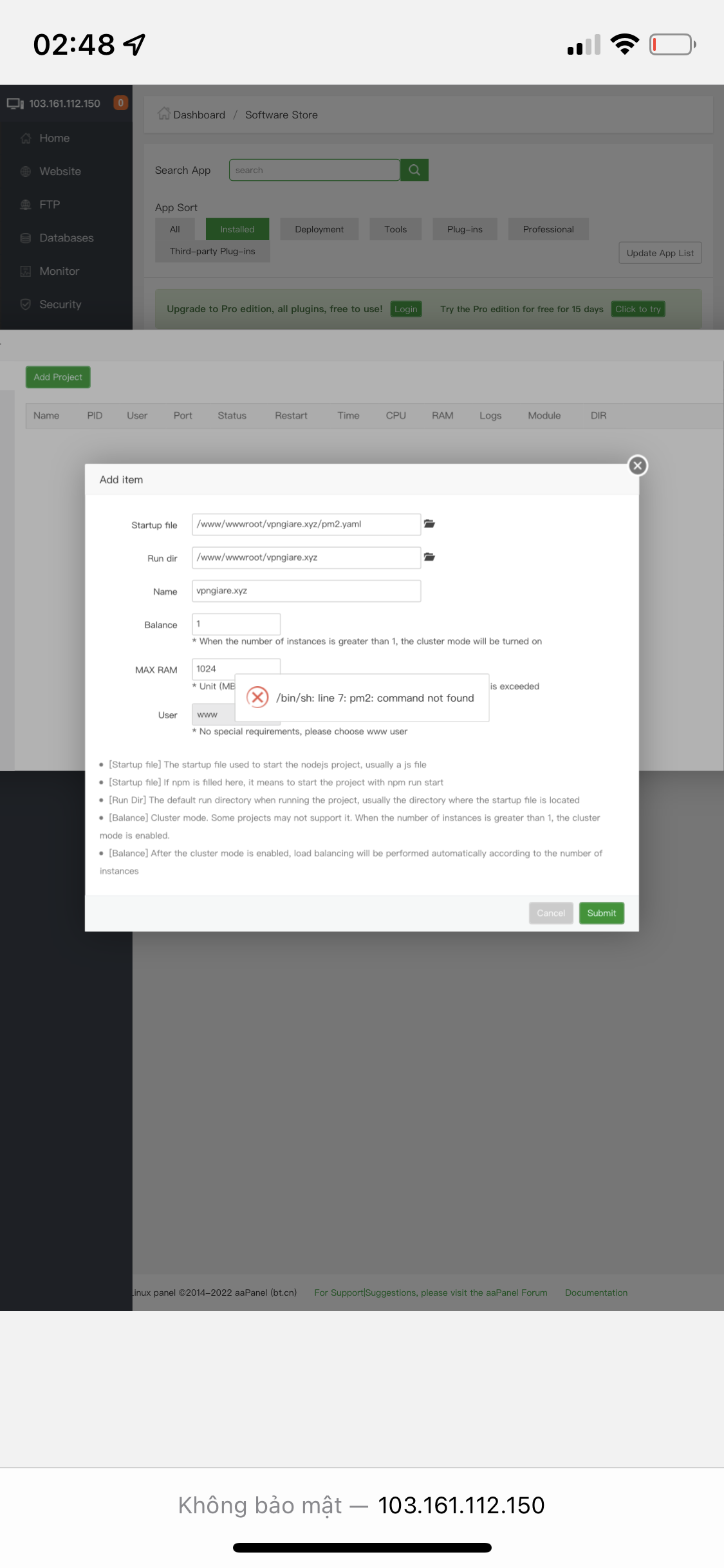 aaPanel_Kern aaP_nguyenminhquan13122005 Hello, when this problem occurs, the teacher fails to install PM2 Manager completely and normally. Please reinstall and check for errors.you can check the error here.