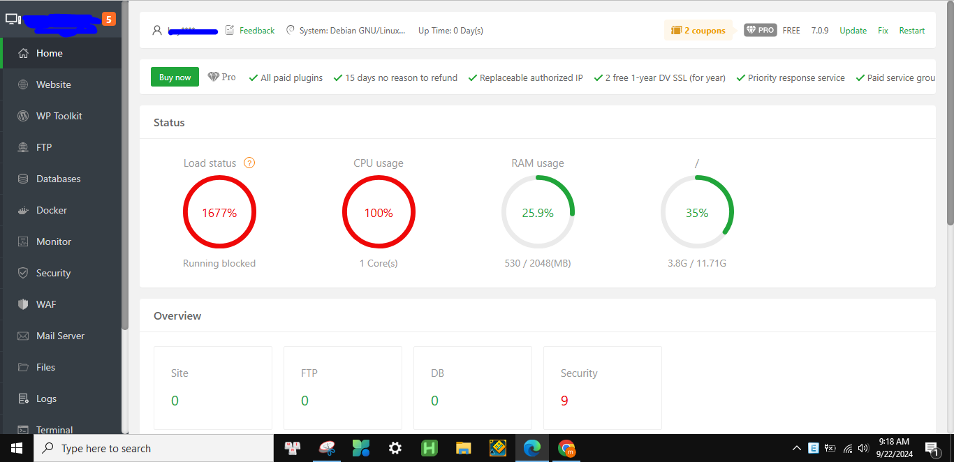 aaPanel_Kern Hello, is this a server built using LXC? What version of operating system are you using? Tianheyu