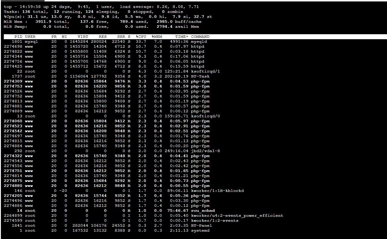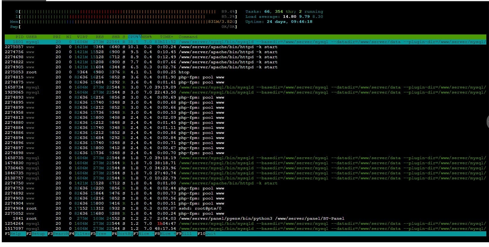 aaPanel_Kern Hello, it is recommended to use phpmyadmin to check which mysql processes are slow? Check if indexing is done? Also check whether the slow log of php is normal. belal