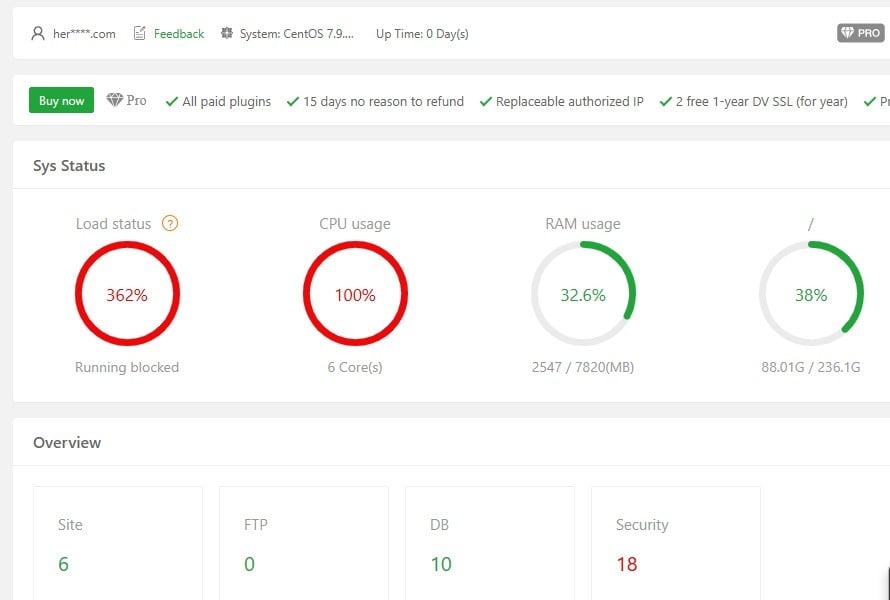 aaPanel_Kern Hello, it is recommended that you check what is used for CPU, you can go to the Monitor interface or use the top command to view it. Check whether it was attacked aaP_sigitseno243