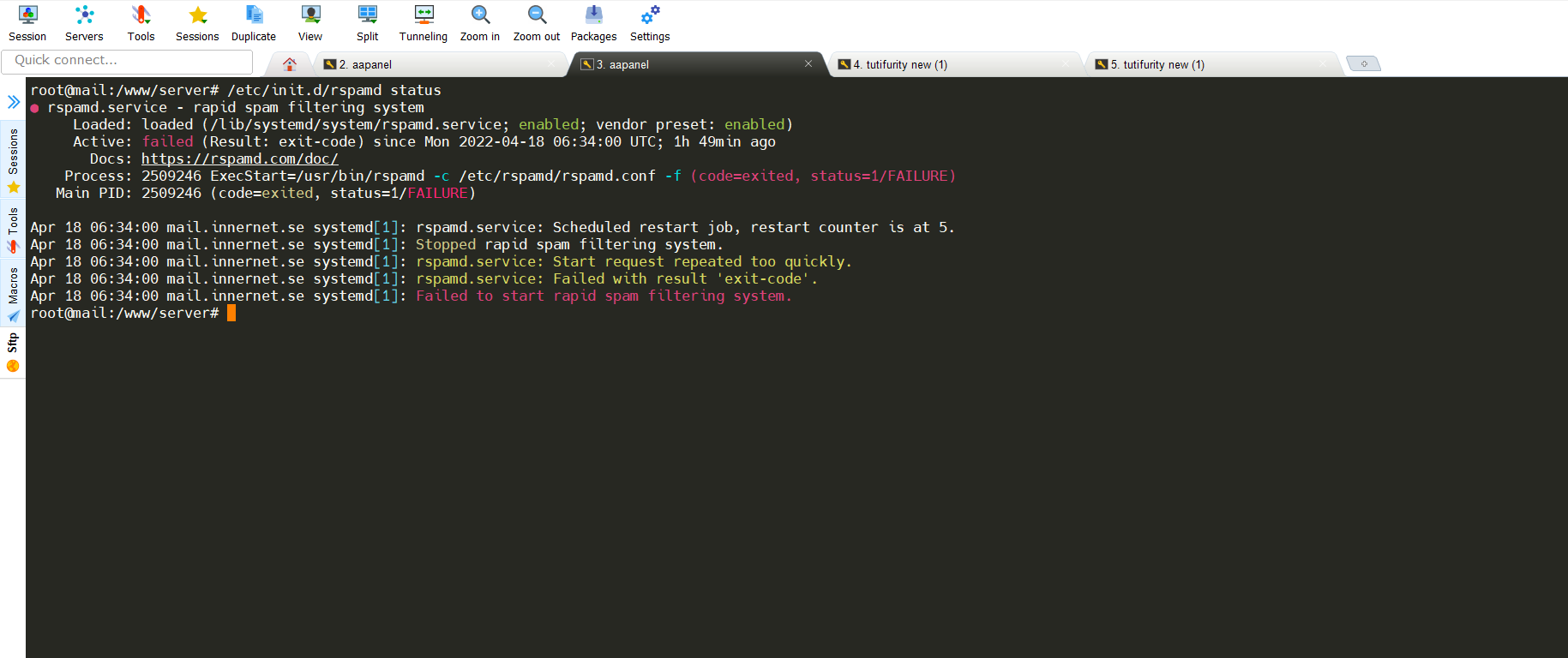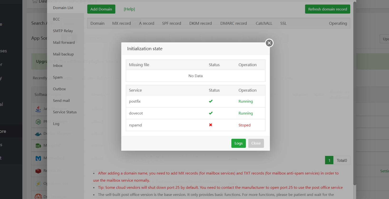 I installed aapanel mail service but after installation, I am receiving the error rspamd stop I have checked everything but a specific error is there. can you please help me to resolve the issue? i have also attached the screenshot for reference Thanks