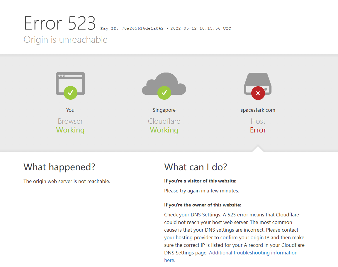 aaPanel_Kern aaP_contactspacestark Hello, please refer to the error message: https://support.cloudflare.com/hc/en-us/articles/115003011431-Error-523#523error