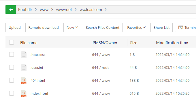 Hello, please upload your website files to the directory of the relevant website. When aapanel builds a site, a welcome interface will be created, which means that the site has been successfully established. You only need to upload the website file to replace it.