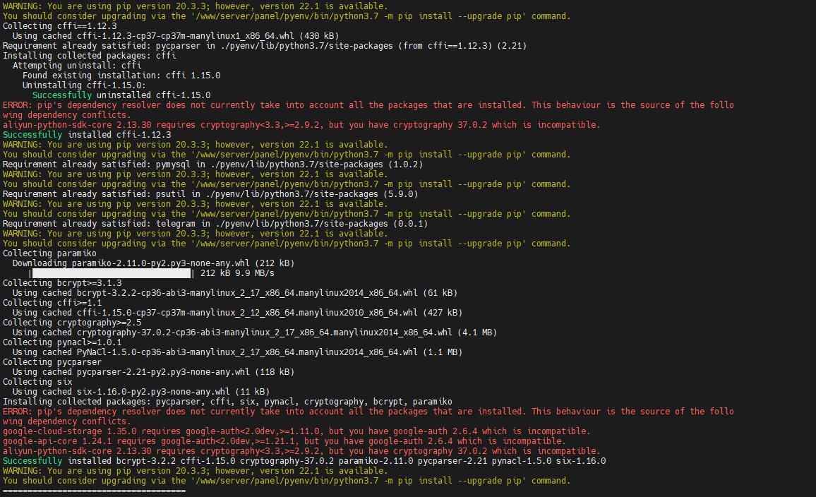 aliyun-python-sdk-core 2.13.30 requires cryptography<3.3,>=2.9.2, but you have cryptography 37.0.2 which is incompatible.
