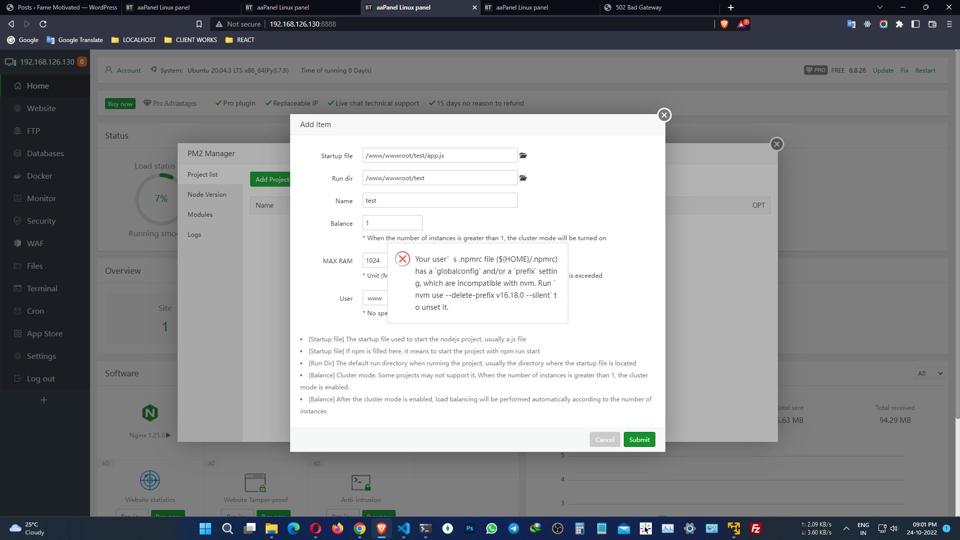 I just started using aaPanel, and I'm already loving it, for me it's already the best. But unfortunately I'm having difficulties in configuring a node.js application, I managed to install it on my other panel, but on aaPanel I'm not getting it.