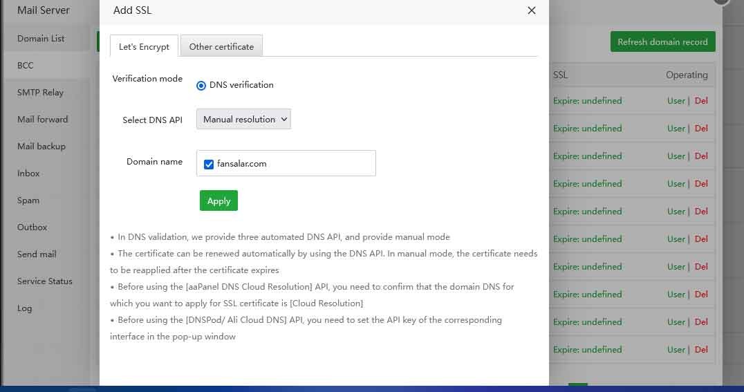 In Cloudflare or in aapanel/appstore/Dns Manager you must add this DNS RECORD: