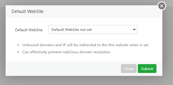 Hello, this setting is: unbound domains and IPs will be redirected to this website,