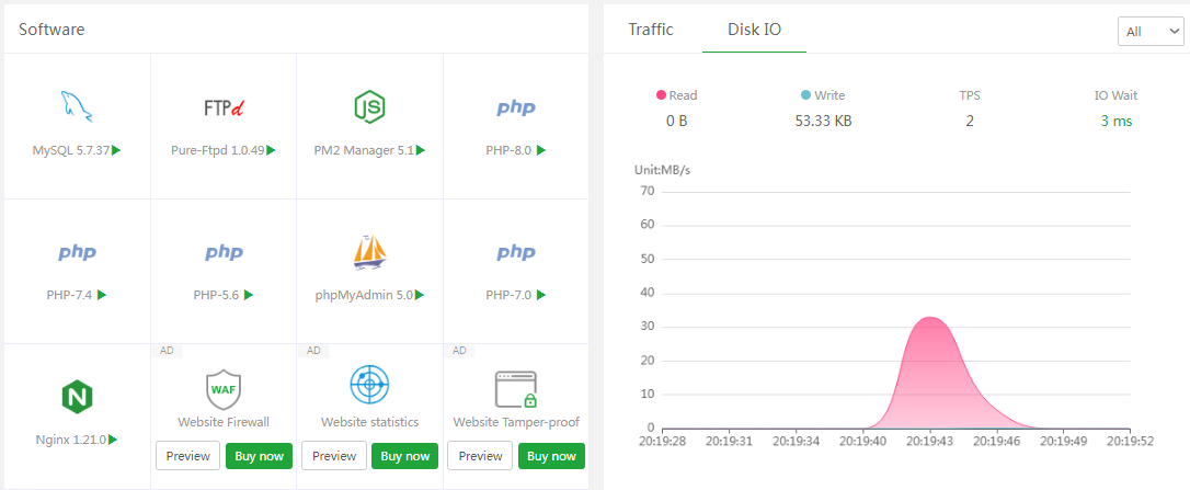 on Ubuntu shows all DISK installed aapanel shows only 1 the root disk