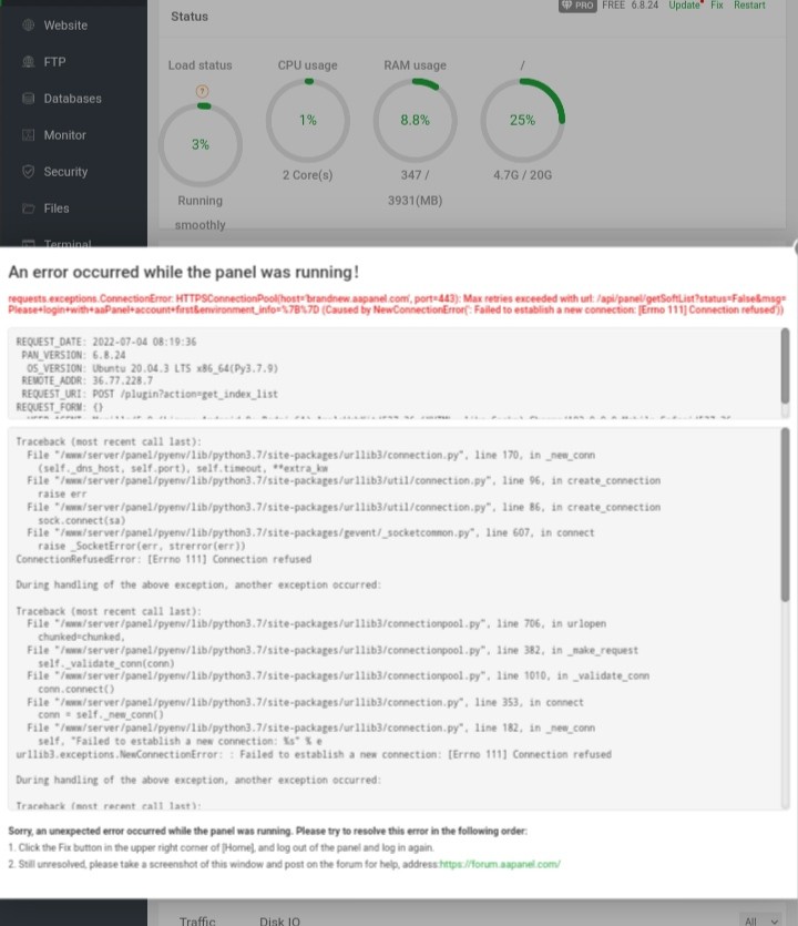 If there are settings, please ping brandnew.aapanel.com