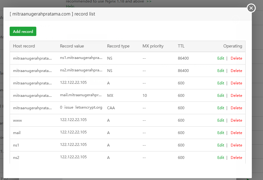 aaPanel_Kern aaP_ruangserveraps Hello, please check if your server firewall and server provider's firewall have open ports? At the same time, it is recommended that you directly use the domain name provider's website to modify the records. Some manufacturers of DNS Manager plugins cannot propagate.
