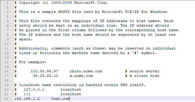 how i can access the website at the localhost/ test.com