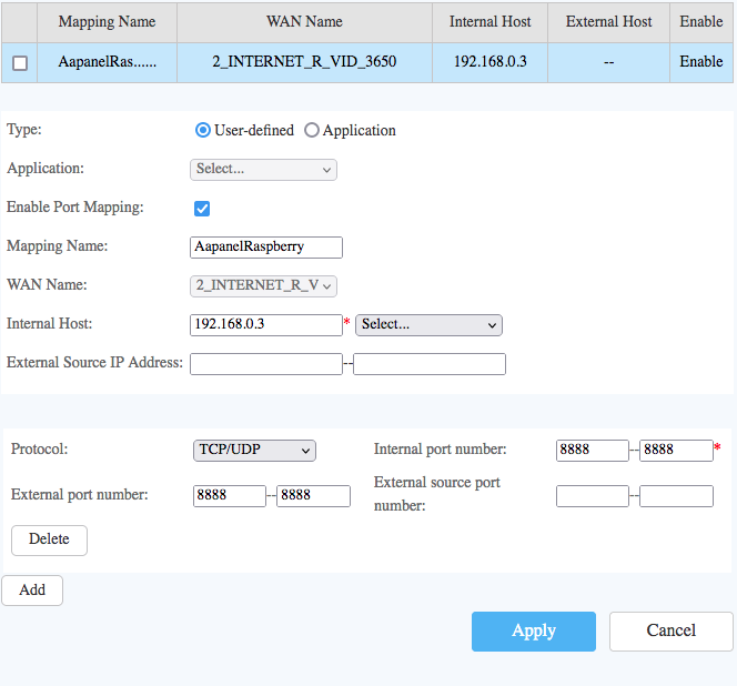 VirgilioMacero Hello i have a raspberry pi 4 B and i can't connect to aapanel with my public ip, i tried opening the ports from the router to see if that was the problem but it was'nt, the thing is that in my local network works. what should i do ?