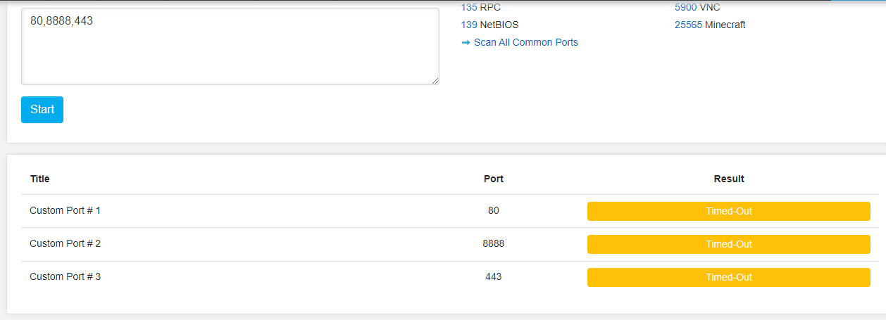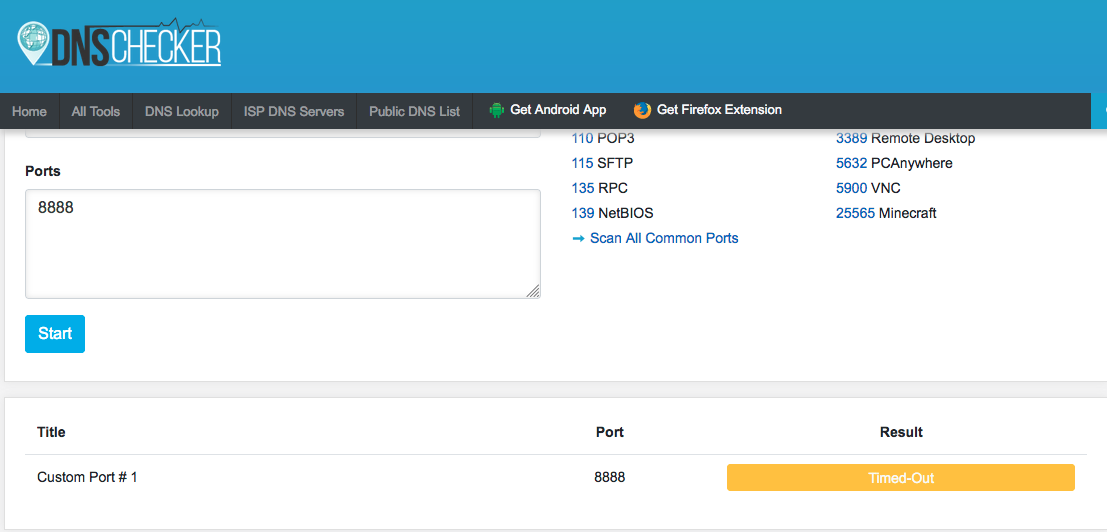 aaPanel_Kern VirgilioMacero Hello, you should have no mapping pair. Use this website to scan ports. https://dnschecker.org/port-scanner.php