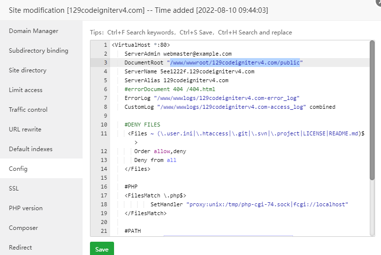 error log: [Thu Aug 11 10:18:50.213674 2022] [autoindex:error] [pid 11601:tid 140700502910720] [client my ip:22905] AH01276: Cannot serve directory /www/wwwroot/my website/: No matching DirectoryIndex (index.php,index.html,index.htm,default.php,default.html,default.htm) found, and server-generated directory index forbidden by Options directive