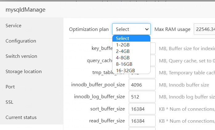 aaPanel_Kern aaP_richardreoc Hello, does your server only have mysql? There are php, web services. If it is recommended, set 32GB, or you can configure it yourself according to the recommendations of Current status