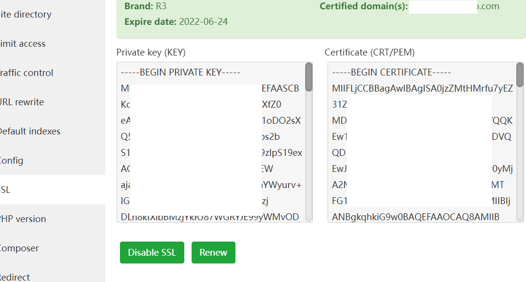 Now go to your aaPanel Click Websites > Conf of website > SSL