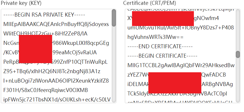 in Certificate (CRT/PEM) box: first paste certificate.crt then after this post ca_bundle in same box