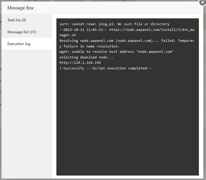 urllib3.exceptions.MaxRetryError: HTTPSConnectionPool(host='brandnew.aapanel.com', port=443): Max retries exceeded with url: /api/panel/getSoftList?status=False&msg=Please+login+with+account+first&environment_info=%7B%7D (Caused by NewConnectionError(': Failed to establish a new connection: [Errno -3] Temporary failure in name resolution'))