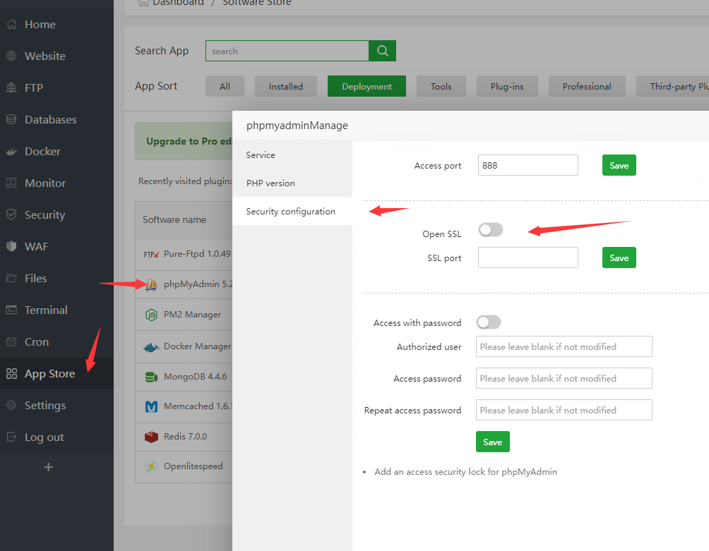 The image you provided above phpmyadminManage i can't find this option in my panel.