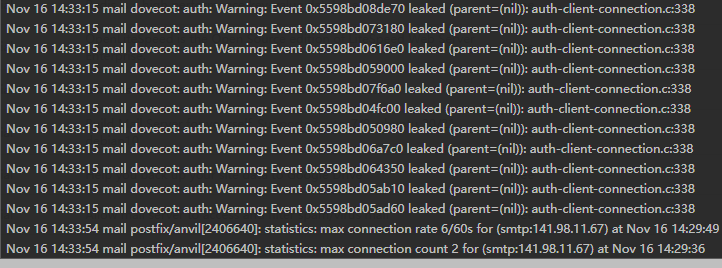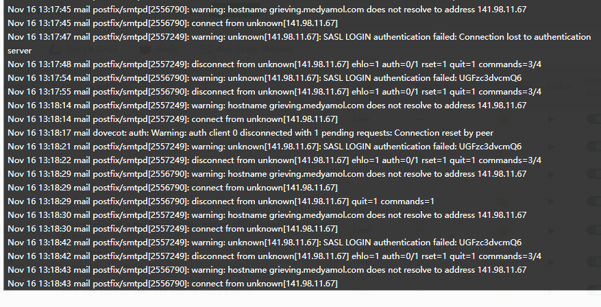 update: The reason I was looking at my mail server log, is that I had problems with wordpress mails not being sent. Now I see that the problem is with an "overloaded background task"