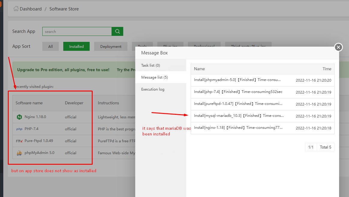 I created a blank Ubuntu server with a new aaPanel install. But I am unable to install MariaDB 10.3