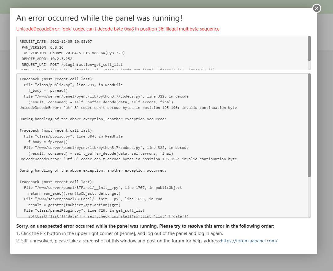 Hi, can you give us your aapanel information? The server makes a snapshot backup first, if possible, please send it to kern@aapanel.com.