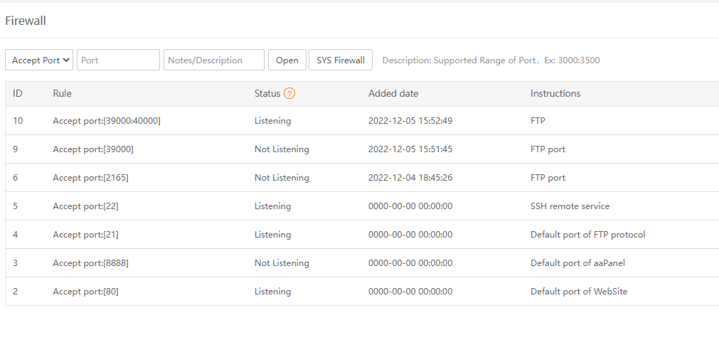 aaPanel_Kern useradmin Hello, is there any other click application type? Click port Range to view ? number how to add