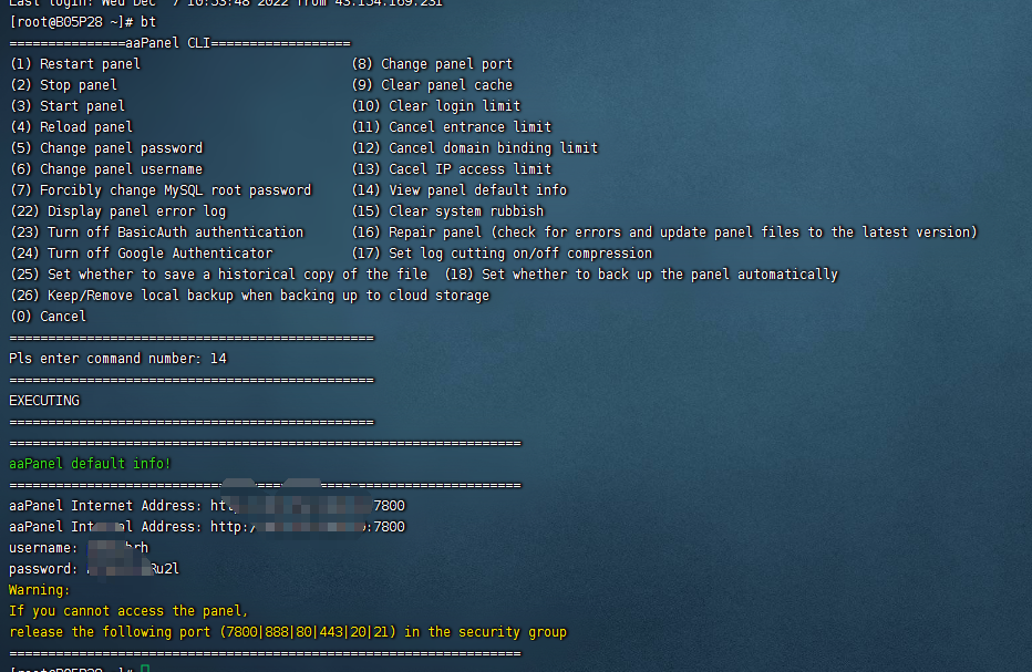 When I installed it, my portal forgot to back it up. When I open it again, I will be prompted to "Please use the correct Progress". I don't know how to retrieve it. I tried to enter 14 on the server to view the panel information, but I didn't get any useful information.!