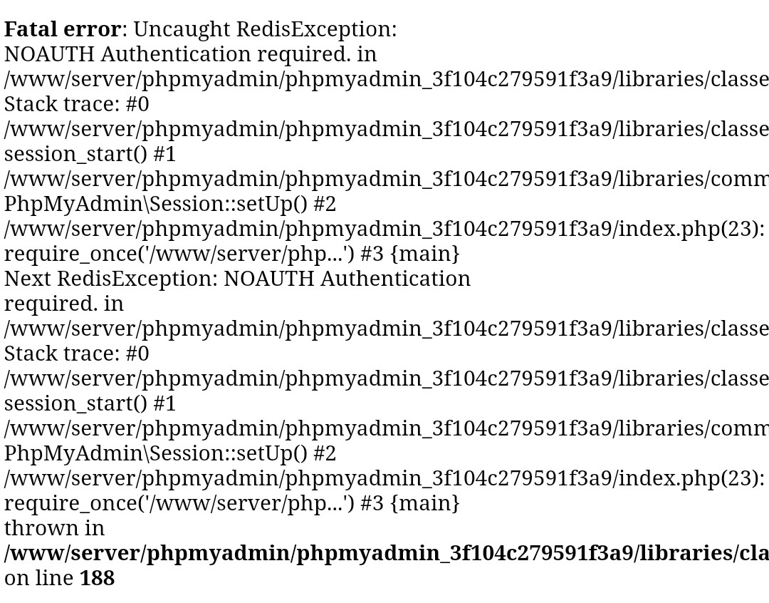 aaPanel_Kern aaP_idfernn Hello, please check whether redis is enabled in the php used by phpmyadmin? phpmyadmin does not support redis by default, try to install a new php for phpmyadmin, the session configuration storage method uses files