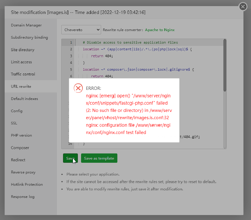 Hello, it prompts 32 lines of errors. It is recommended to solve the problem according to the prompts. Building a php website in aapanel will automatically generate related php configurations.